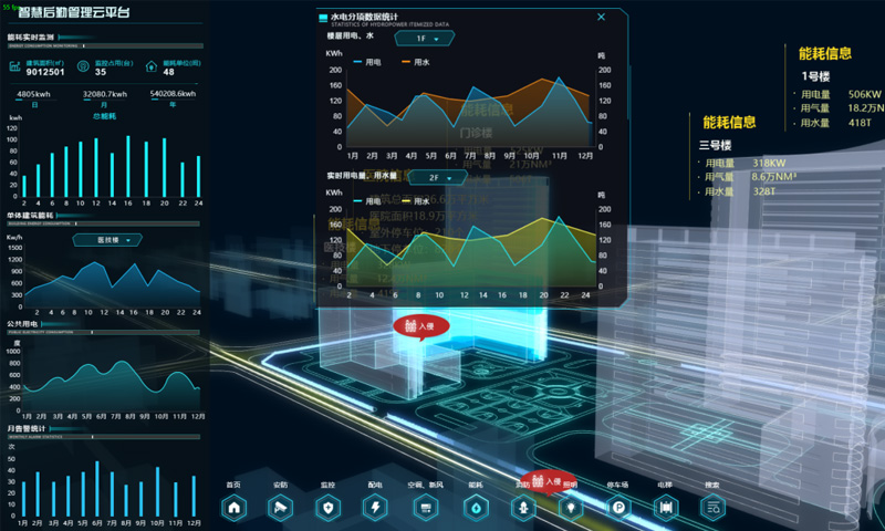能對建筑內(nèi)的水、電、氣能耗進(jìn)行數(shù)據(jù)實(shí)時(shí)采集、匯總、分析,并上傳至管控中心,使用戶能源管理者直觀了解到本單位耗能情況,為用能管理提供數(shù)據(jù)支撐,可上傳至當(dāng)?shù)卣芎钠脚_